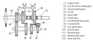 through a dog clutch with gear E. thus the input shaft rotation with output shaft rotation or 1: 1.Position Reverse / Reverse, is required to drive the vehicle backward. In